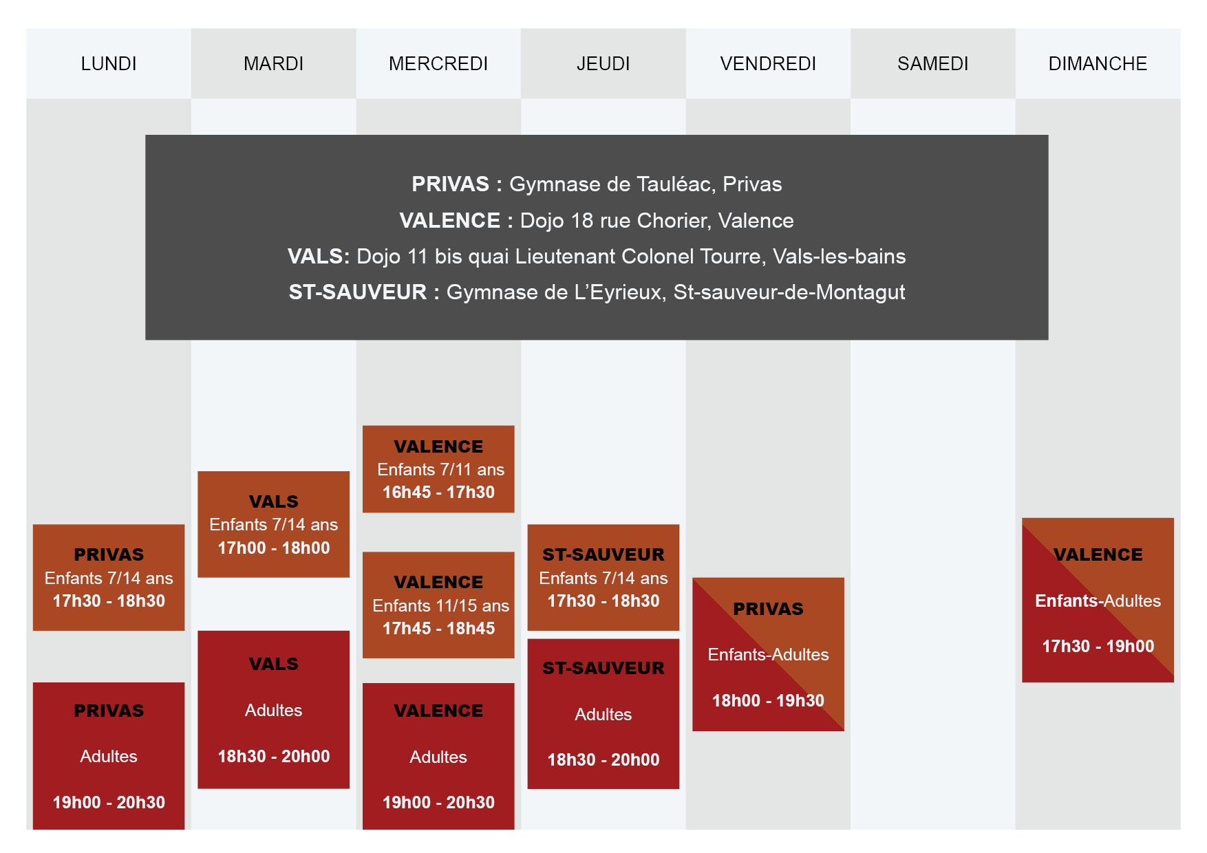 Vendredi : Ados/Adultes 18h00-19h30